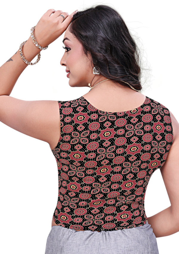 This Black Masakkali Print Saree Blouse pairs beautifully with cotton sarees, silk sarees, Ajrakh prints, and festive drapes. Whether styled for celebrations, parties, or casual ethnic wear, it adds sophistication and effortless elegance to your wardrobe.