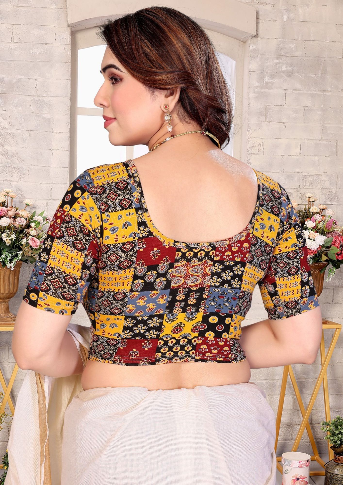 Upgrade your ethnic wardrobe with this beautifully crafted Pure Cotton Kalamkari Blouse featuring authentic hand block print detailing. Designed for comfort and elegance, this blouse is made from premium cotton with added stretch for a flattering fit.
